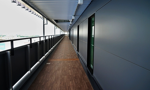 ・外廊下の設置により、全区画で歩行者と車両の動線を完全分離した設計。