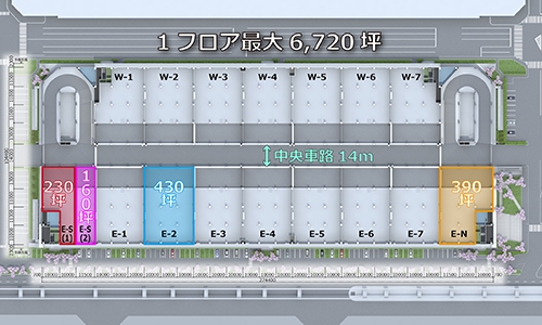 ・最大6,720坪の大規模フロアにより、高効率な物流オペレーションを実現。