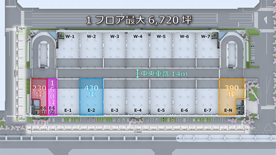 1F フロア最大6,720坪(1フロア利用の場合)